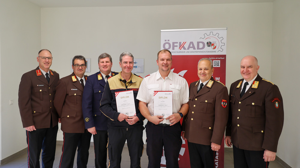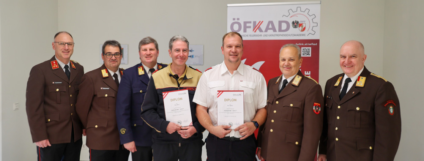 Wie bereits im Vorjahr wurde dieses Jahr erneut eine Fachausbilderprüfung Level 1 über die Österreichische Feuerwehr- und Katastrophenschutzakademie in Salzburg durchgeführt. BM Rene Welser von der Feuerwehr- & Zivilschutzschule Steiermark und HBM Franz Mantl von der Landesfeuerwehrschule Tirol konnten am 28. November 2025 die ÖBFV Fachausbilderprüfung Level 1 erfolgreich abschließen. Die Prüfungskommission unter der Leitung von BFR Klaus Tschabuschnig sowie Feuerwehrvizepräsident und Landesfeuerwehrkommandant von Salzburg Günter Trinker gratulierten den zwei Absolventen nach einer theoretischen und praktischen Prüfung sowie der Vorstellung eines entwickelten Unterrichtskonzepts und der Abhaltung eines Unterrichts für ihre erbrachte Leistung und freuten sich über den Zugewinn an geprüften Ausbildern für die jeweiligen Landesfeuerwehrschulen.