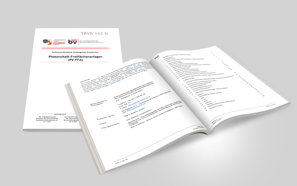 Die Publikation TRVB 162 N 26: „Photovoltaik-Freiflächenanlagen (PV-FFA)“ ist fertig produziert und steht ab sofort im ÖBFV-Webshop zur Verfügung.