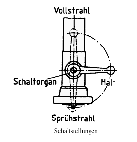 Am Schaltorgan lassen sich die Stellungen Vollstrahl, Halt und Sprühstrahl